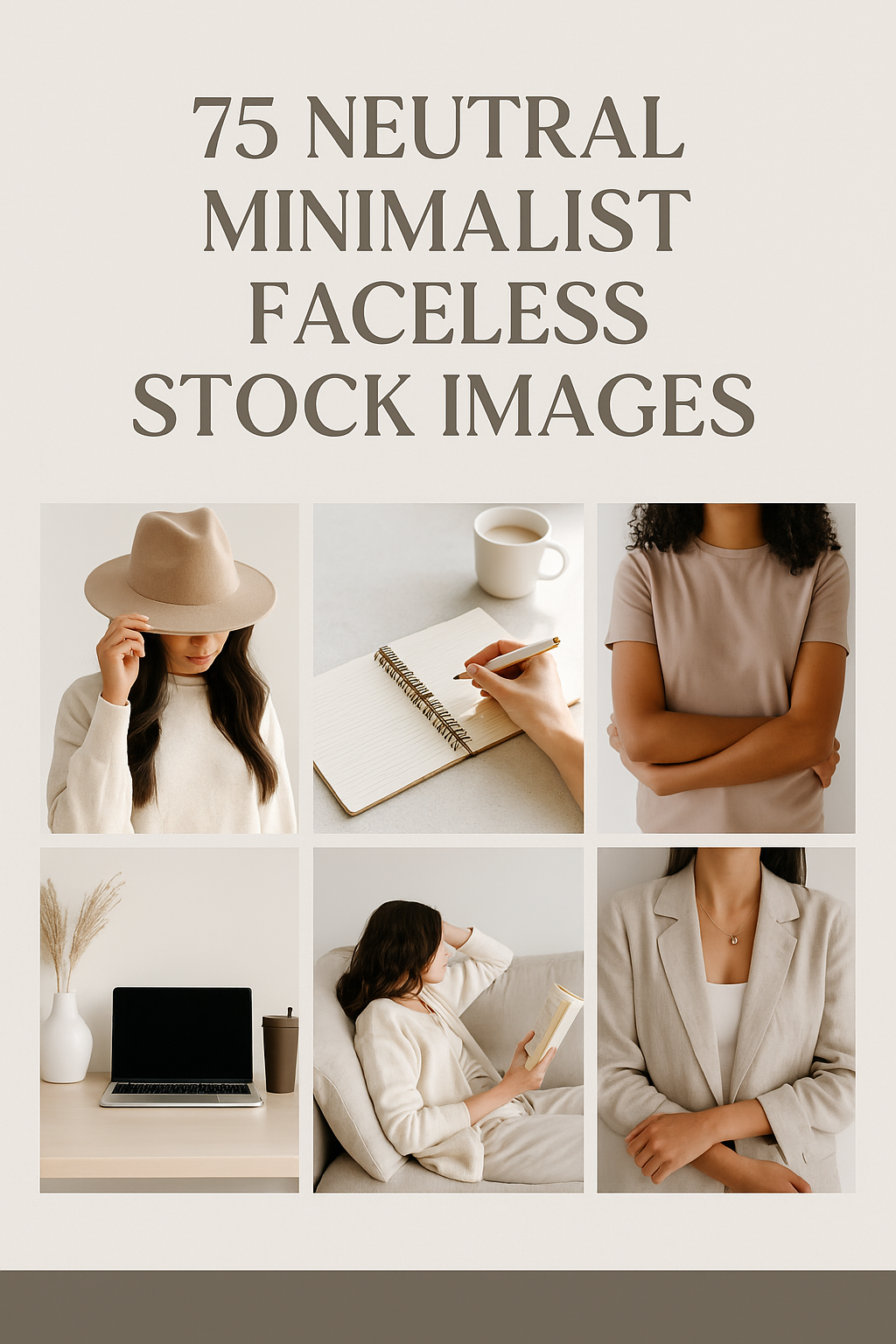 Elevate your brand visuals with this curated bundle of 75 Neutral Minimalist Faceless Stock Images, perfect for coaches, digital creators, small business owners, and content marketers. Each photo features clean, calming tones and faceless aesthetics that complement any brand style without distraction.
