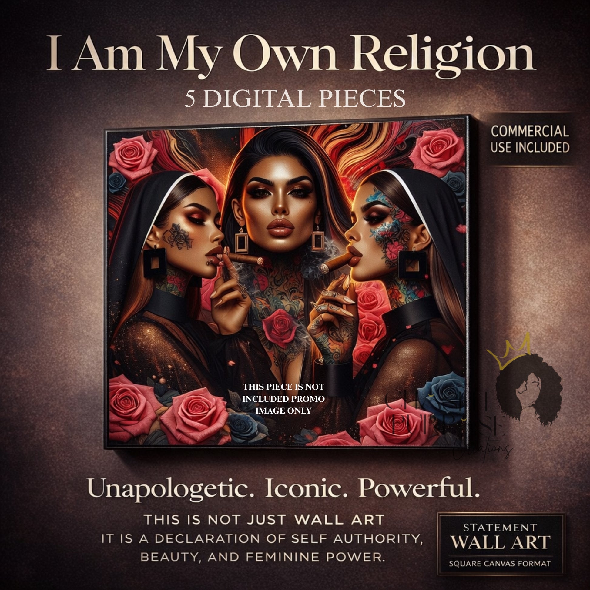 I Am My Own Religion represents self-sovereignty, beauty on your own terms, and power without permission. It is art for women who define themselves—and for spaces that reflect that truth.