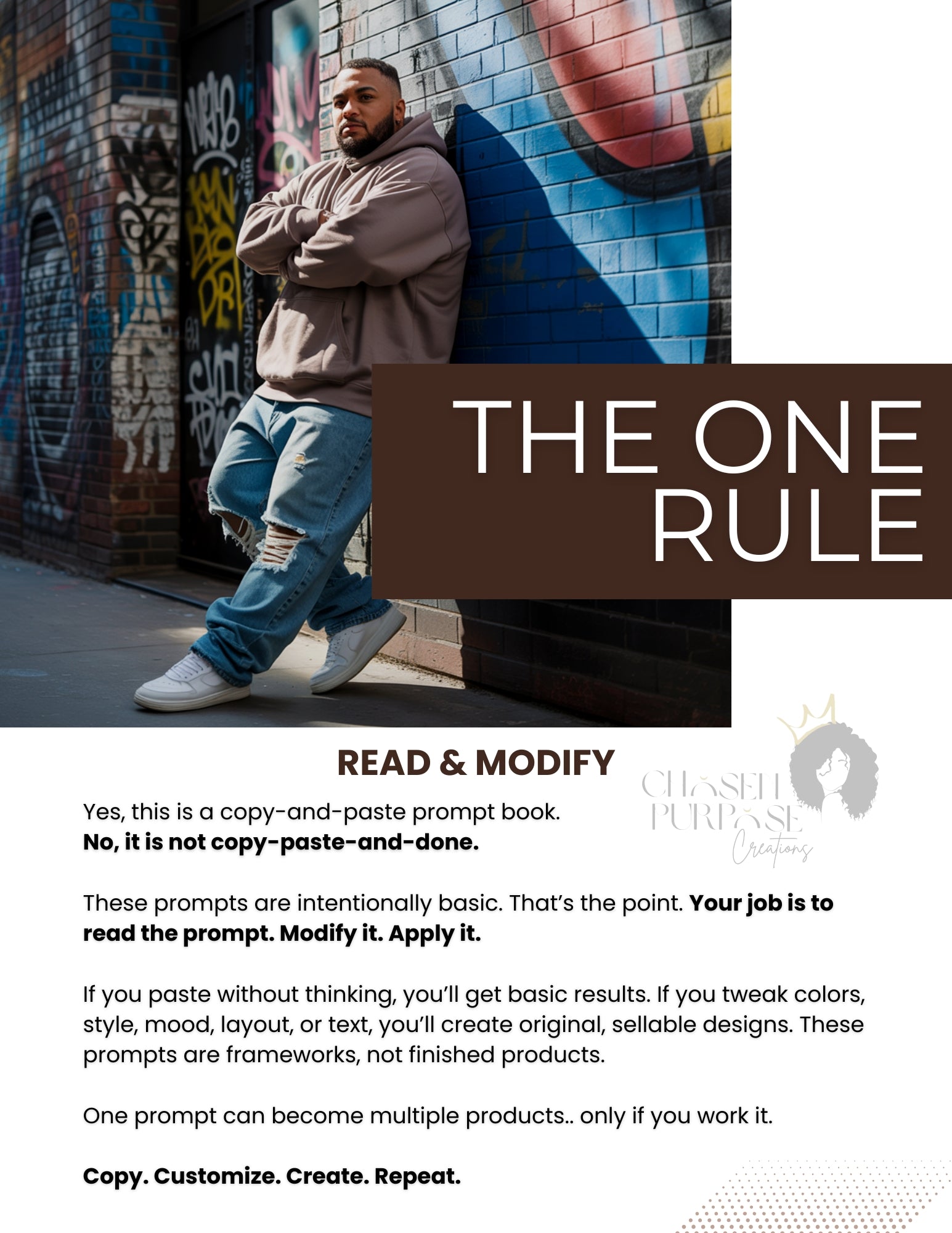 No Resell Rights: This product may not be resold, shared, or redistributed. You may sell the products you create using the prompts — not the prompts themselves.