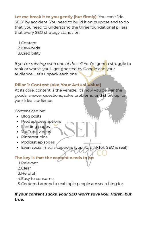 - ✅ The 3 Pillars of SEO every strategy needs: Content, Keywords, Credibility