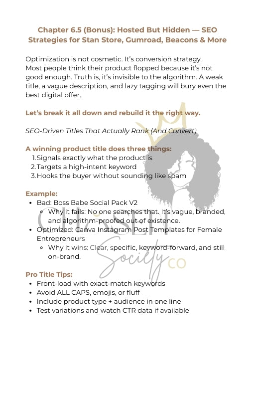 - ✅ Special section: SEO for hosted platforms (Stan Store, Gumroad, Beacons, Payhip)