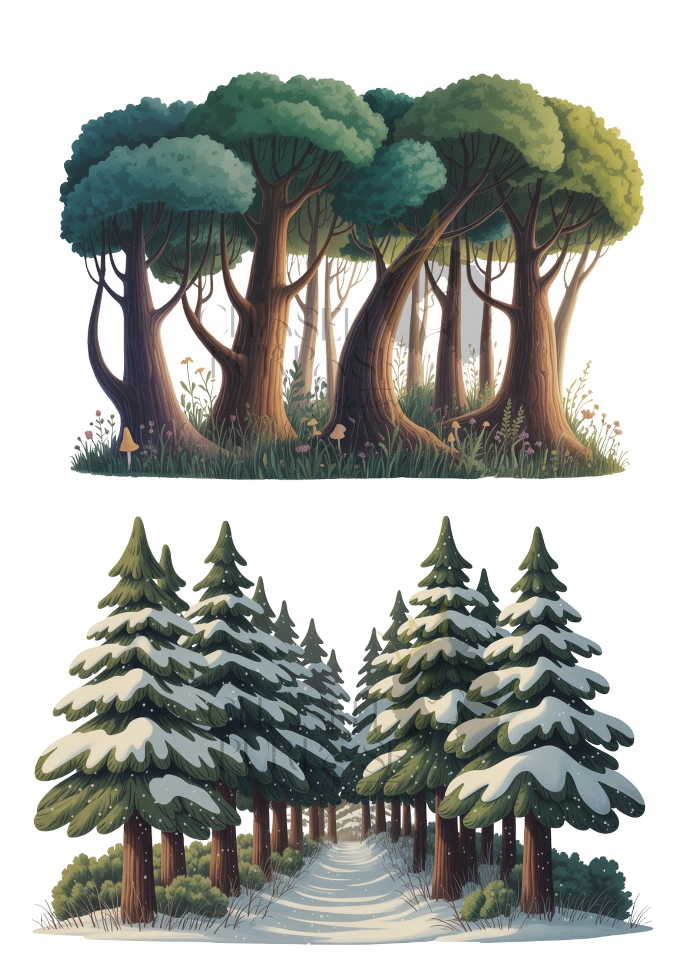 • Coordinating storybook clip art (characters, bears, forest scenes, paths, cave, grass, trees, snow forest)